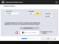 Impostare <Fuso orario> e <Ora legale> come necessario. Per ulteriori informazioni, vedere Impostazione di data/ora.