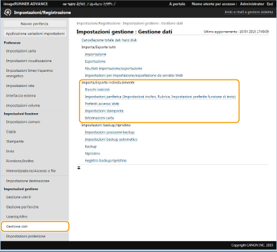 Fare clic su [Impostazioni stampante] in [Importa/Esporta individualmente].