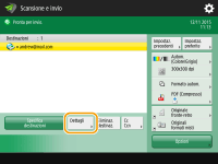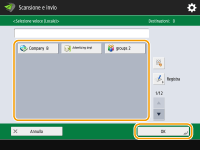 Premere <Indirizzo I-Fax>, immettere la destinazione, quindi premere <OK>. La destinazione deve essere specificata nel formato "adv01@esempio.com". Per inviare a un dispositivo all'interno della stessa rete, immettere la destinazione nel formato "adv01@192.168.11.100 (nome del destinatario@indirizzo IP)".