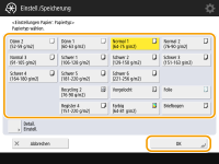 ![]() Wenn Sie das häufig verwendete Papierformat auf Tasten <S1> bis <S5> registrieren, können Sie diese dann per Tastendruck aufrufen. Registrieren von Papier in Sonderformat (Anwenderdefiniertes Papierformat)