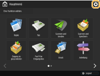 Sie können eine Schnellschaltfläche für die Funktionen im Hauptmenü anlegen. Verwenden Sie diese Schaltfläche, um auf eine andere Funktion zuzugreifen, ohne zum Hauptmenü zurückzukehren. Zum Anlegen einer Schnellschaltfläche melden Sie sich mit Administratorrechten an. Anmelden beim Gerät