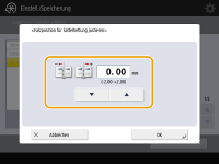 Wenn Sie den optionalen Broschüren Finisher verwenden, und Sie bemerken, dass der Falz des Papiers nicht exakt in der Mitte der Broschüre ist, können Sie diese Einstellung verwenden, um die Sattelstichfalzposition anzupassen.