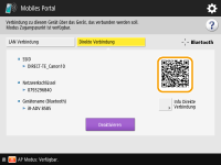 Drücken Sie <Info Direkte Verbindung> auf dem Bildschirm <Direkte Verbindung>, um die verbundenen Mobilgeräte zu prüfen.
