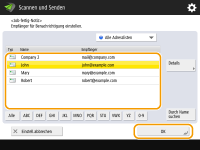 Der Empfänger für die E-Mail-Benachrichtigung muss vom Adressbuch angegeben werden. Registrieren Sie den gewünschten Empfänger zuvor. Speichern von Empfängern im Adressbuch