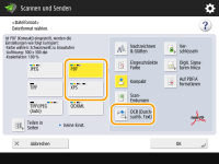Wenn Sie <PDF> oder <XPS> als Dateiformat auswählen, können Sie <Kompakt> und <OCR (Durchsuchbarer Text)> zeitgleich festlegen. In diesem Fall wird <PDF (Kompakt)> oder <XPS (Kompakt)> als Dateiformat im Grundfunktionsbildschirm für Scannen und Senden angezeigt.