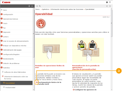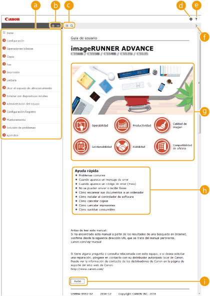 Haga clic para visualizar información sobre cómo ver el Guía de usuario, cómo realizar una búsqueda y otra información.
