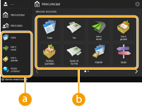, aparece el Menú principal y una lista de botones de función. El Menú principal muestra una de botones de función mediante los que se accede a cada función. Puede cambiar las funciones de esos botones o reorganizar las posiciones, para así escoger más fácilmente las funciones más usadas o esconder las funciones que no se utilizan a menudo. Personalizar el Menú principal