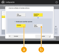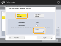 ![]() Si registra el tamaño de papel que utiliza con más frecuencia en los botones <S1> a <S5>, puede recuperarlo con un solo toque. Registrar papel de tamaño libre (Tamaño de papel personalizado)