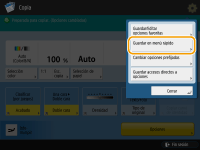 Puede registrar botones Personales para su propio uso, o bien botones Compartidos, que pueden ser utilizados por todos los usuarios en el Menú rápido.