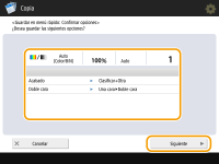 El procedimiento para utilizar botones en el Menú rápido varía en función de la función y las opciones registradas.