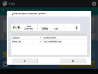 Si selecciona <Sí> para <Mostrar pantalla de confirmación al rellamar> y <Iniciar recuperación (la operación se iniciará al pulsar el botón)>, la copia se iniciará cuando seleccione <Sí> en la pantalla de confirmación.