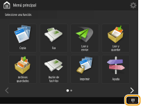 Cuando la unidad de acabado se llena de residuos de perforación, aparece un icono en la esquina inferior derecha de la pantalla. Pulse el icono y siga las instrucciones de la pantalla para vaciar los residuos de perforación.