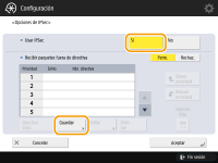 <PFS>Si activa la función de Confidencialidad directa total (PFS) (<Sí>), aumenta la confidencialidad de la clave de cifrado, pero la velocidad de la comunicación es menor. Por otra parte, hay que habilitar la función PFS en el dispositivo del interlocutor de la comunicación.