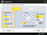 Especifique la posición de impresión y la orientación del original, y pulse <Aceptar>.