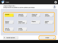 Si desea cambiar algunas de las opciones, como la escala de copia o la densidad del siguiente original, pulse <Cambiar opciones> en la pantalla, cambie las opciones y proceda con el paso 7.