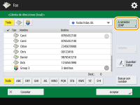 Si selecciona el destino de grupo que contiene destinos que no son de fax, no se puede enviar ningún fax.