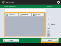 Le permite ver un grupo concreto de destinos. Si inicia una sesión en el equipo con la gestión de autenticación personal, al seleccionar <Lista de direcciones personales>, aparece su Libreta de direcciones personal.