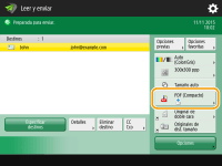 Especifique el destino en la pantalla Funciones básicas de lectura.
