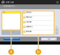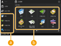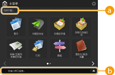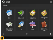 按<主菜单>屏幕上的功能按钮会显示“基本功能”屏幕,可以从该屏幕访问复印、传真和扫描等基本功能。尽管“基本功能”屏幕上的显示屏幕和设置项目因功能而异,但也可以根据需要更改设置。
