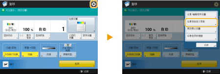 指定复印设置。<主菜单>屏幕
