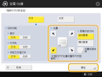 指定打印位置和原稿方向,然后按<确定>。