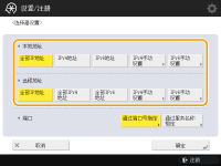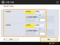 3 | 指定要应用IPSec的端口。 按<通过端口号指定>以在指定应用IPSec的端口时使用端口号。选择<全部端口>对所有端口号应用IPSec。要对特定端口号应用IPSec,按<单端口>并输入端口号。指定端口后,按<确定>。在<本地端口>中指定本机的端口,在<远程端口>中指定通信对等方的端口。 ![]() 按<通过服务名称指定>以在指定应用IPSec的端口时使用服务名称。在列表中选择服务,按<服务打开/关闭>将其设置为<打开>,然后按<确定>。 ![]() | ||||||||||||||