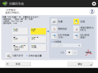 在<状态确认/取消>屏幕上,可以检查所发送/保存文档的状态。使用此屏幕,可以在检查状态后重新发送/保存文档或取消发送/保存。 检查已扫描文档的状态和日志