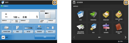 按 主功能表 及基本功能畫面顯示的 以便自訂畫面,例如重新排列按鈕或建立快速鍵。只有管理員才能自訂主功能表畫面。自訂觸控面板顯示幕![]() 您可以變更與畫面顯示有關的設定,例如開啟本機電源後立即顯示的畫面,以及是否對於剩餘紙張和碳粉顯示訊息。<顯示設定> 您可以設定經過一段時間不操作將顯示的畫面。<自動重設後的功能> |