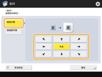 若要在雙面影印時移動背面的影像,則需要 <反面> 設定。若要移動至和正面相同的位置,請按下 <與正面相同>。若要對稱移動,請按下 <與正面相反>。若要移動至和正面不同的位置,請按下 <設定> 並輸入移動距離。