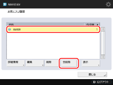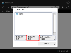 お気に入りのリストは[名称]や[作成順]を押して、昇降順に並びかえることができます。 ウェブページの削除/名称変更に従ってメインメニュー画面上のボタンも削除/名称変更されます。 名称が長い場合は、名称変更時に改行したい位置で改行すると、メインメニュー画面のボタンに改行した状態で表示できます。名称を改行した場合でも、お気に入りのリストには1行で表示されます。 |