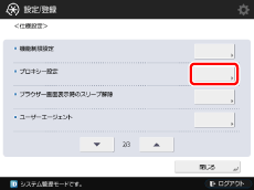 セキュリティー上、プロキシーを使用する必要のないアドレスを指定できます。本体側で設定したプロキシーを確認できます。