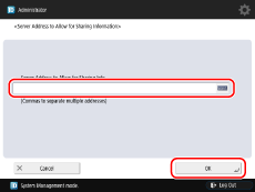 Press [Security] → [Server Address to Allow for Sharing Info].