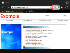 For instructions on entering characters, see "User's Guide." Depending on the entry area of the Web page, the text field of the keyboard may be displayed with multiple entry lines. Depending on the size of the Web page or images, the Web page may not be displayed correctly or an error message may appear. Depending on the image size, it may take some time for GIF animations to load. If multiple windows are open, the windows are not differentiated, and URLs are saved in the order that they were entered. |