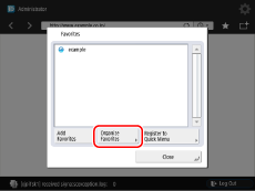 Press [Name] or [Order] to sort the Favorites list in ascending or descending order. The buttons on the Main Menu screen are deleted/renamed when you delete/rename the corresponding Web pages. If you add a line break in the name of the favorite page, the name on the Main Menu screen is displayed as you added the line break. Even if the name of favorite page contains line breaks, it is displayed in one line in the Favorites list. |