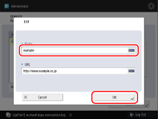 If you press [OK] without entering a name in the name field, the URL address is registered as the name. |