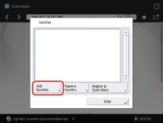 You can add frequently viewed Web pages to Favorites. Web pages registered in Favorites appear on the Main Menu screen as buttons. By adding a Web page to Favorites, you can easily access the Web page.
