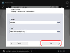 If you want to change the name of the Web page to be added, press the text field for [Name] → enter the name → press [OK].