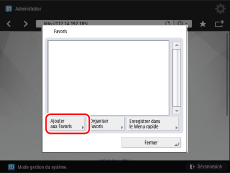 Il est possible d'ajouter aux Favoris des pages consultées régulièrement. Les pages Web mémorisées en tant que Favoris s'affichent sous forme de boutons sur l'écran Menu principal. L'ajout d'une page Web aux Favoris permet d'y accéder directement.