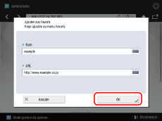 Si vous souhaitez modifier le nom de la page Web à ajouter, appuyez sur le champ texte de [Nom] → saisissez le nom → appuyez sur [OK].