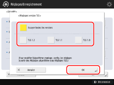 Sélectionnez la version TLS ou [Essayer toutes les versions] → appuyez sur [OK].