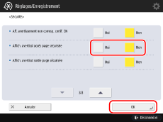 Appuyez sur [Sécurité] → sélectionnez [Oui] ou [Non], pour [Affich. avertisst accès page sécurisée] → [OK].