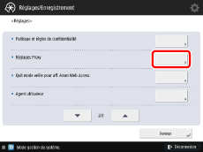 Pour plus d'informations sur la modification des réglages proxy de l'appareil, consultez le « Guide de l'utilisateur ». |