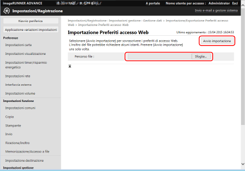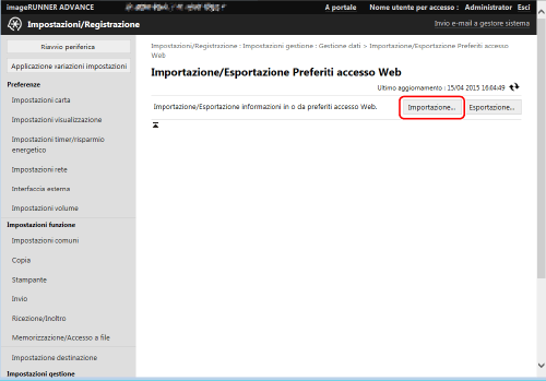 Quando si importano i preferiti da un file del computer, i preferiti già registrati vengono sovrascritti. Quando si importa un file, utilizzare lo stesso formato del file dei dati esportati. Non è possibile importare dati con formati diversi. |