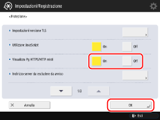 Premere [Protezione] → selezionare [On] per [Visualizza Pg HTTPS/HTTP misti] → premere [OK].