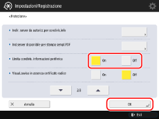 Selezionare [On] per [Limita condivis. informazioni periferica] → premere [OK].