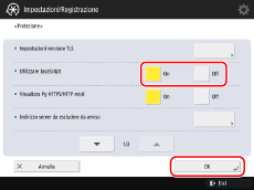 Premere [Protezione] → selezionare [On] per [Utilizzare JavaScript] → [OK].