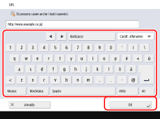 Per le istruzioni relative all'immissione dei caratteri, vedere "Guida per l'utente". A seconda dell'area di immissione della pagina Web, è possibile che nel campo di testo vengano visualizzate più righe di immissione. A seconda delle dimensioni della pagina Web o delle immagini, la pagina Web potrebbe non essere visualizzata correttamente o potrebbe essere visualizzato un messaggio di errore. A seconda del formato di immagine, potrebbero essere necessari alcuni istanti per caricare un'immagine GIF animata. Se si aprono più finestre, le finestre non vengono differenziate e gli URL vengono salvati nell'ordine in cui sono stati immessi. |