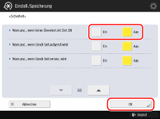 Drücken Sie [Sicherheit] → Wählen Sie [Ein] oder [Aus] für [Warn.anz., wenn keine Übereinst.mit Zert.CN] → [OK].
