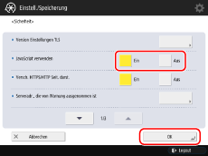 Berühren Sie [Sicherheit] → Wählen Sie [Ein] für [JavaScript verwenden] → [OK].