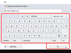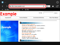 Informationen zur Eingabe von Zeichen finden Sie unter „Anwenderhandbuch“. Abhängig vom Eingabebereich auf der Webseite kann das Textfeld der Tastatur mit mehreren Eingabezeilen angezeigt werden. Je nach der Größe der Webseite oder Bilder wird die Webseite möglicherweise nicht richtig angezeigt oder eine Fehlermeldung wird angezeigt. Abhängig von der Bildgröße kann es etwas dauern, bis die GIF-Animationen geladen werden. Zwischen mehreren geöffneten Fenstern wird nicht unterschieden. Ihre URLs werden in der Reihenfolge der Eingabe gespeichert. |